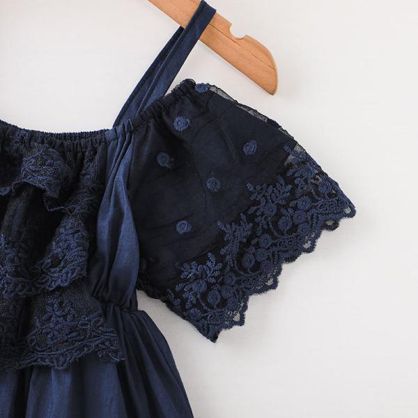 Summer Tulles Girls Dresses. Suspender Design, Breathable Cotton Fabric. Elastic Waist. Square collar. Three-layer lace decoration.